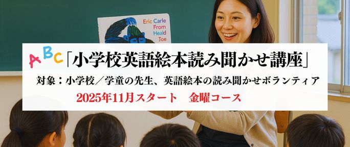 本講座では、文字に興味を持ち始めたお子さんの読みへの誘導のポイントやテクニックを学ぶことができます。年齢にあった英語絵本のリストやサイトワードシートなどのプレゼント特典もございます。(「中級講座」の前に必ず「初級講座」か「入門講座」をご受講ください。)